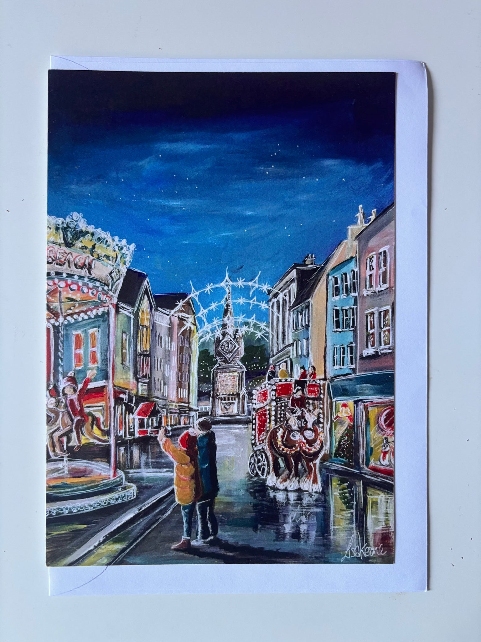 A selection of 7 festive scenes around Waterford at Christmas time. Each painting has appeared on the cover of the Waterford News & Star’s Festive Star Christmas annual since its first publication in 2019. A5 in size, blank inside with a white envelope. Please leave is a message at checkout to let us know which cards you would like in your selection 🎄