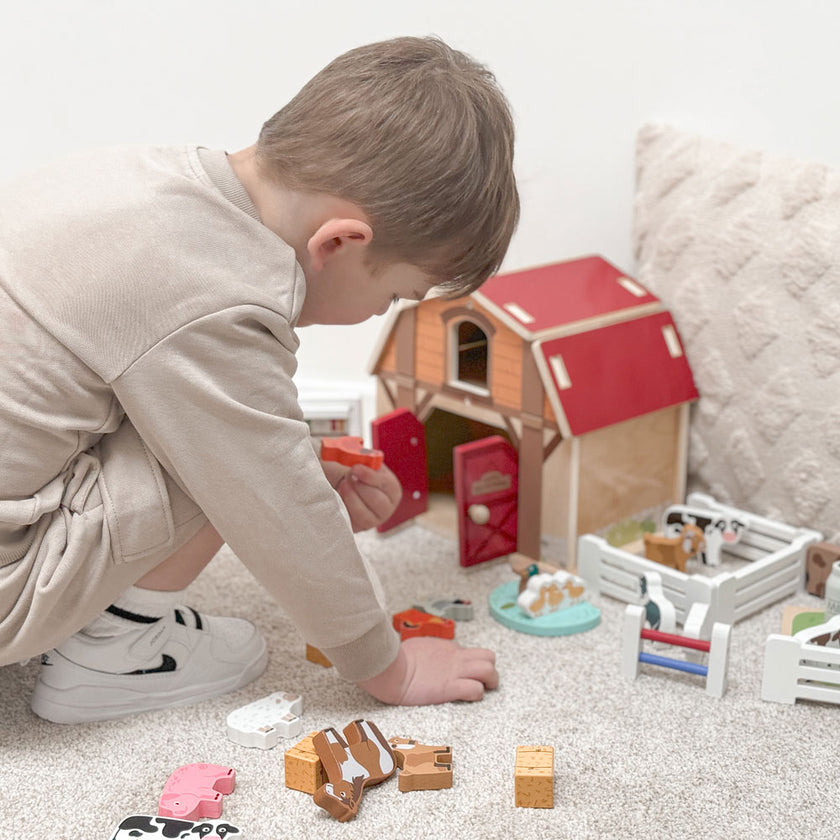 The Jumini Farm Collection is modular and can be added to with any of the compatible play sets including: Milking Parlour, Chicken Coop, Pig Sty and Lambing Shed.