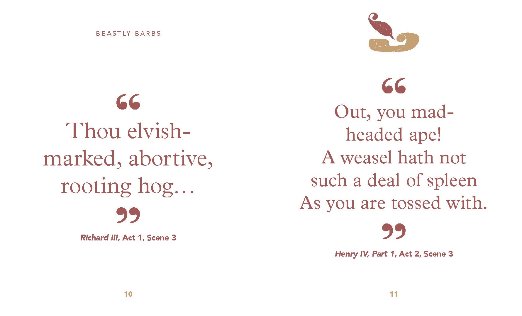 Whether it's Prospero calling Caliban a 'freckled whelp, hag-born' or King Lear railing against his daughter Goneril with the damning words, 'Thou art a boil, a plague sore, an embossed carbuncle in my corrupted blood', Shakespeare doesn't hold back with his slights. Packed full of eloquent stings and poisonous putdowns, this is the perfect resource for anyone looking to scorn an enemy without resorting to the punchy but limited English stock of effs and jeffs.