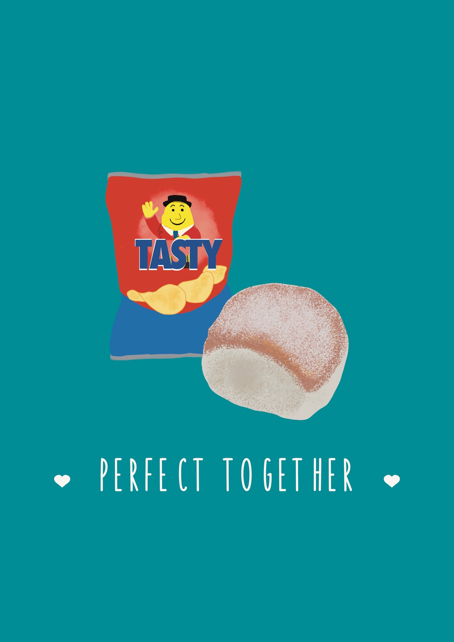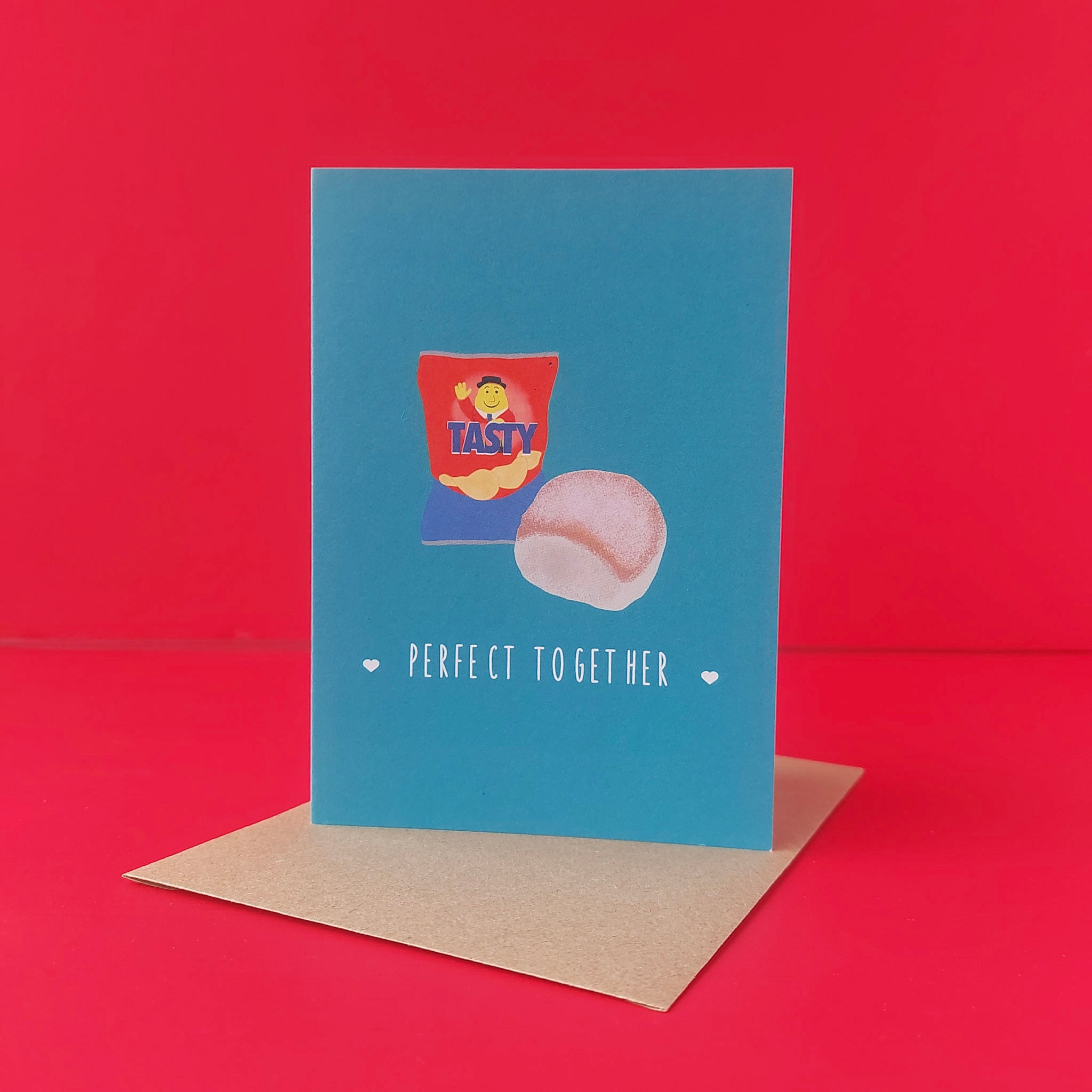 The cutest quintessentially Waterford greeting card - Cheese & Onion Crisps and a Blaa? Perfect Together.
