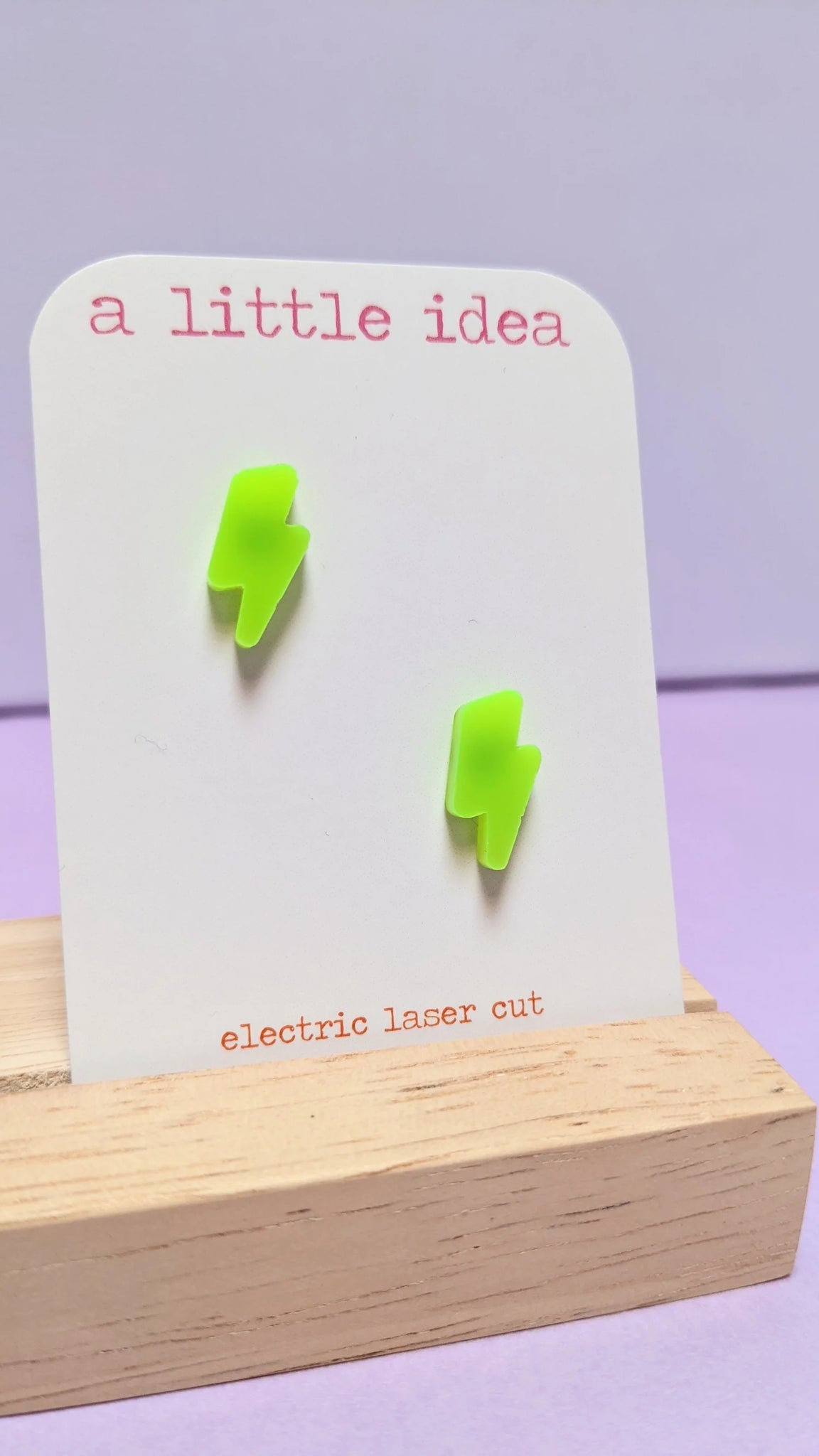 Mini laser cut lightning bolt studs in lots of choices of smooth and glitter acrylic colours.